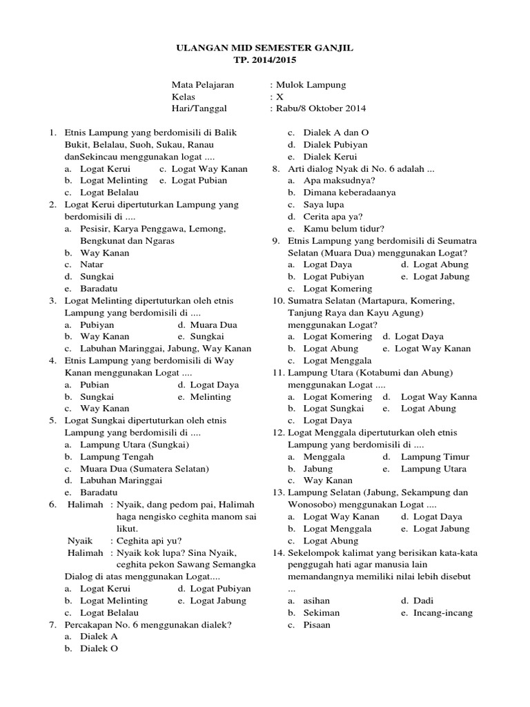 Soal bahasa lampung kelas 10 semester 1 dan kunci jawaban.