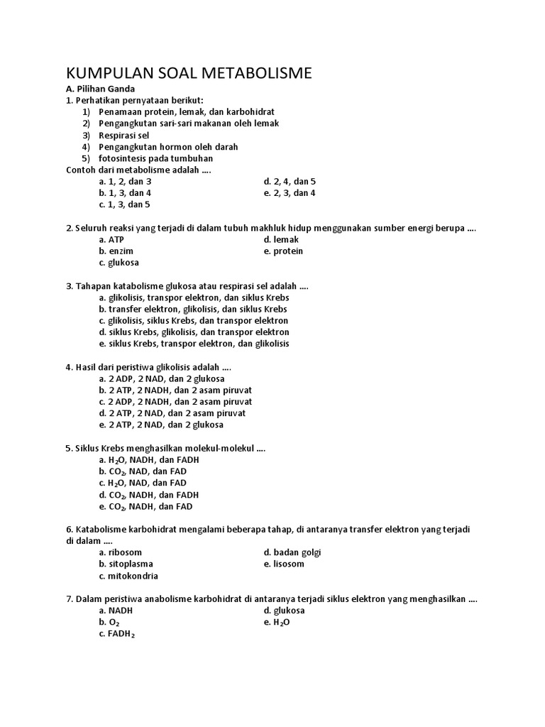 Soal biologi metabolisme kelas 12 dan jawabannya.